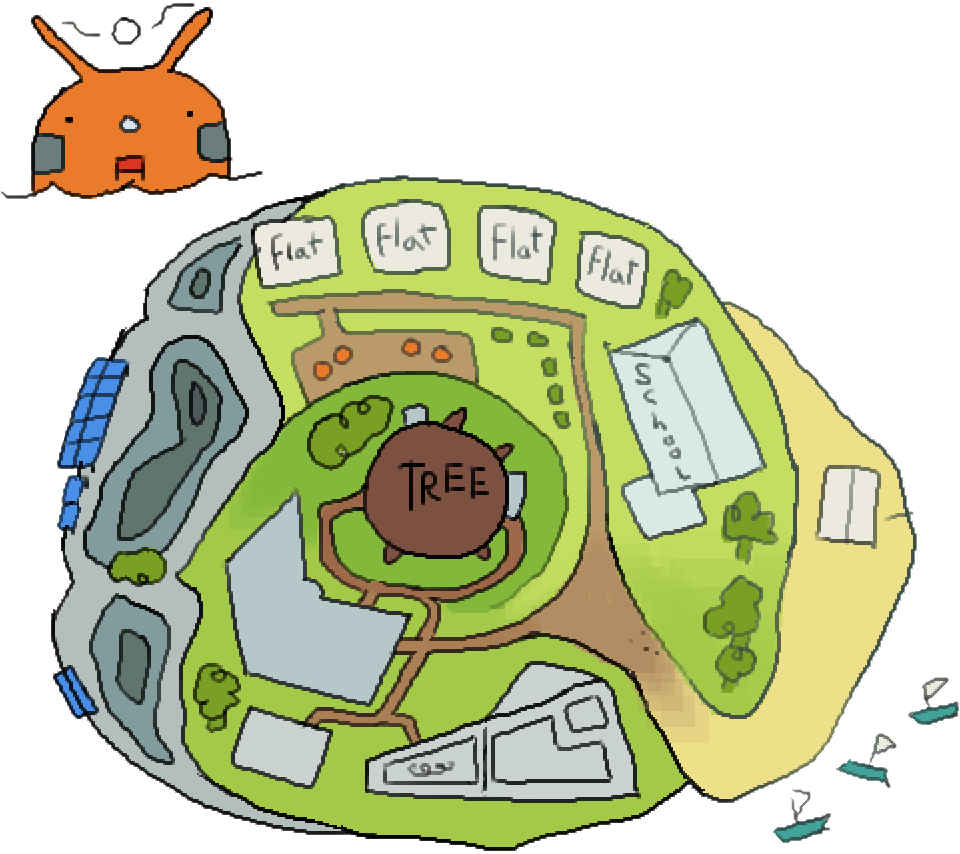 Building textures created in ClipStudio Paint, Animated and modeled in Blender.